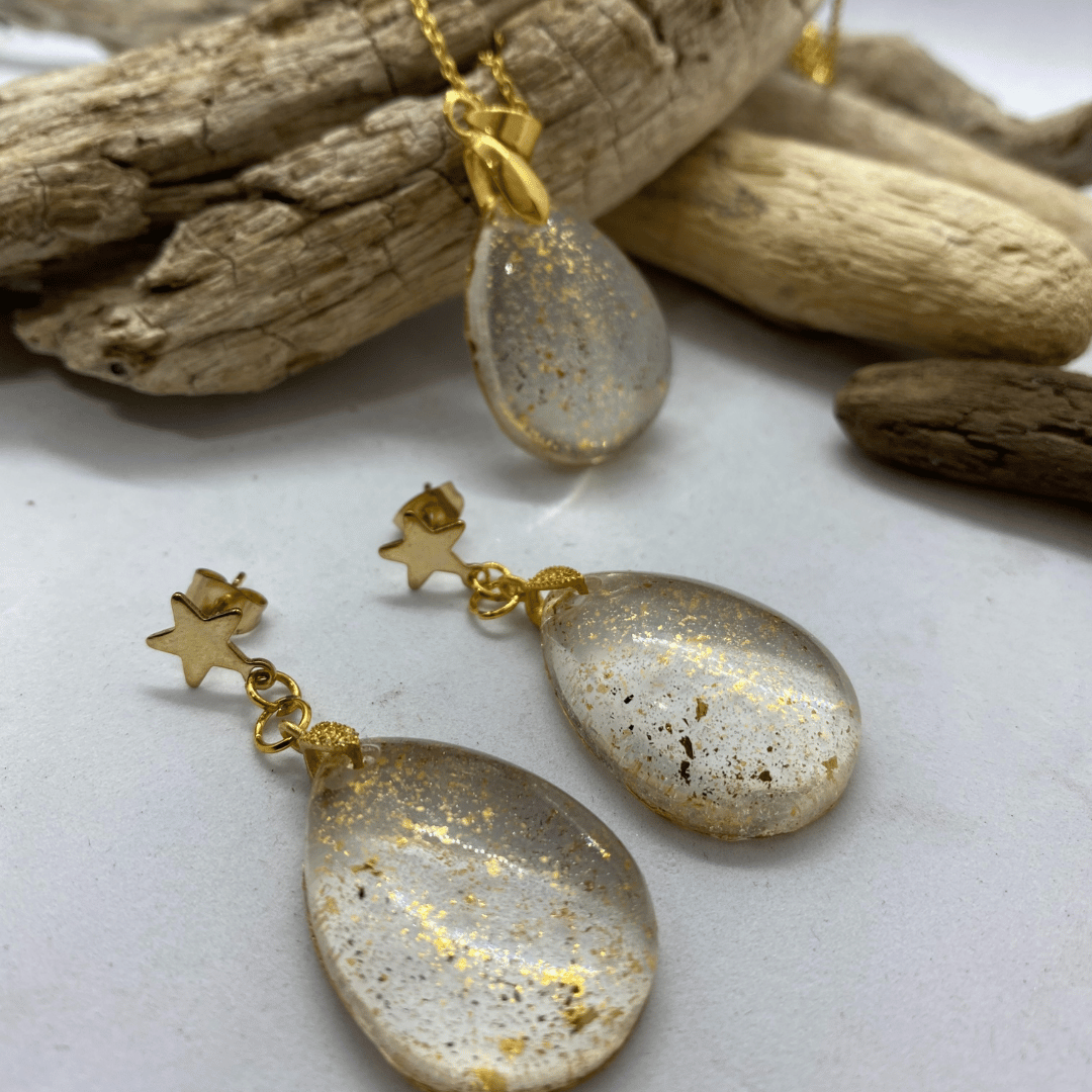 Looking for jewellery to make your style stand out? A handmade jewellery set with earrings and a pendant is the perfect choice for yourself or as a gift when you want to create a harmonious and unique look. Each set is like a work of art, with each piece carefully crafted from epoxy resin and fitting perfectly together. With epoxy jewellery, every look becomes seamless and elegant. From everyday walks to special occasions, exquisite handmade jewellery will accompany every moment, become the accent of your style and allow you to express your individuality.